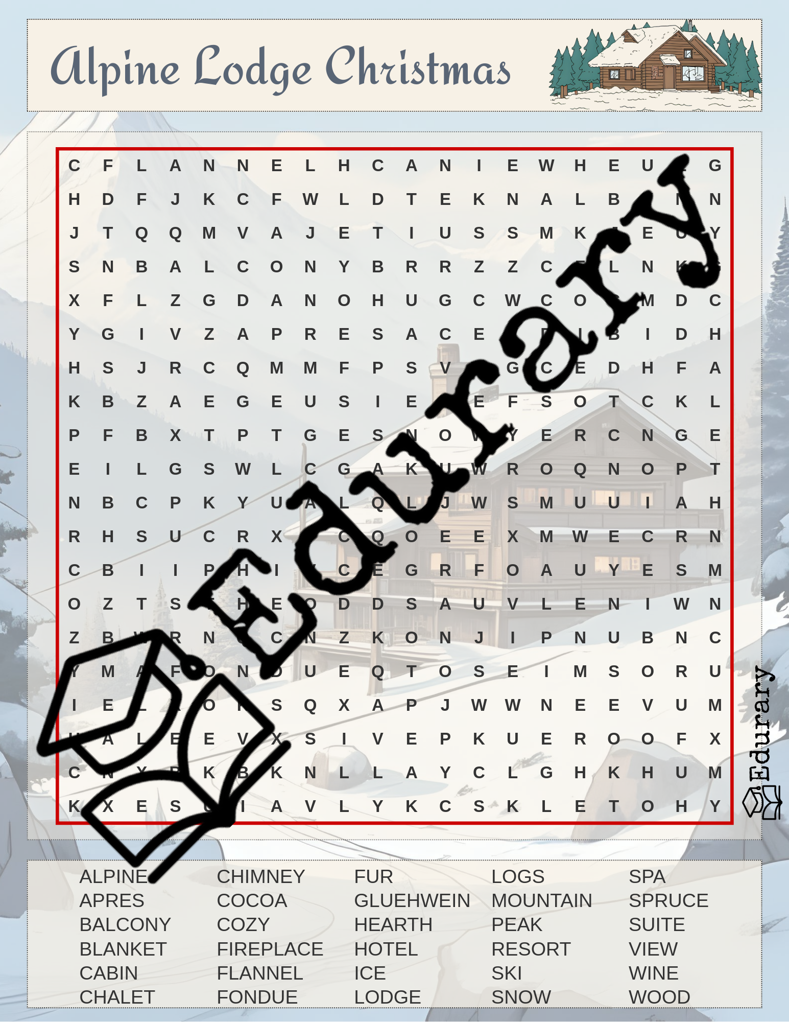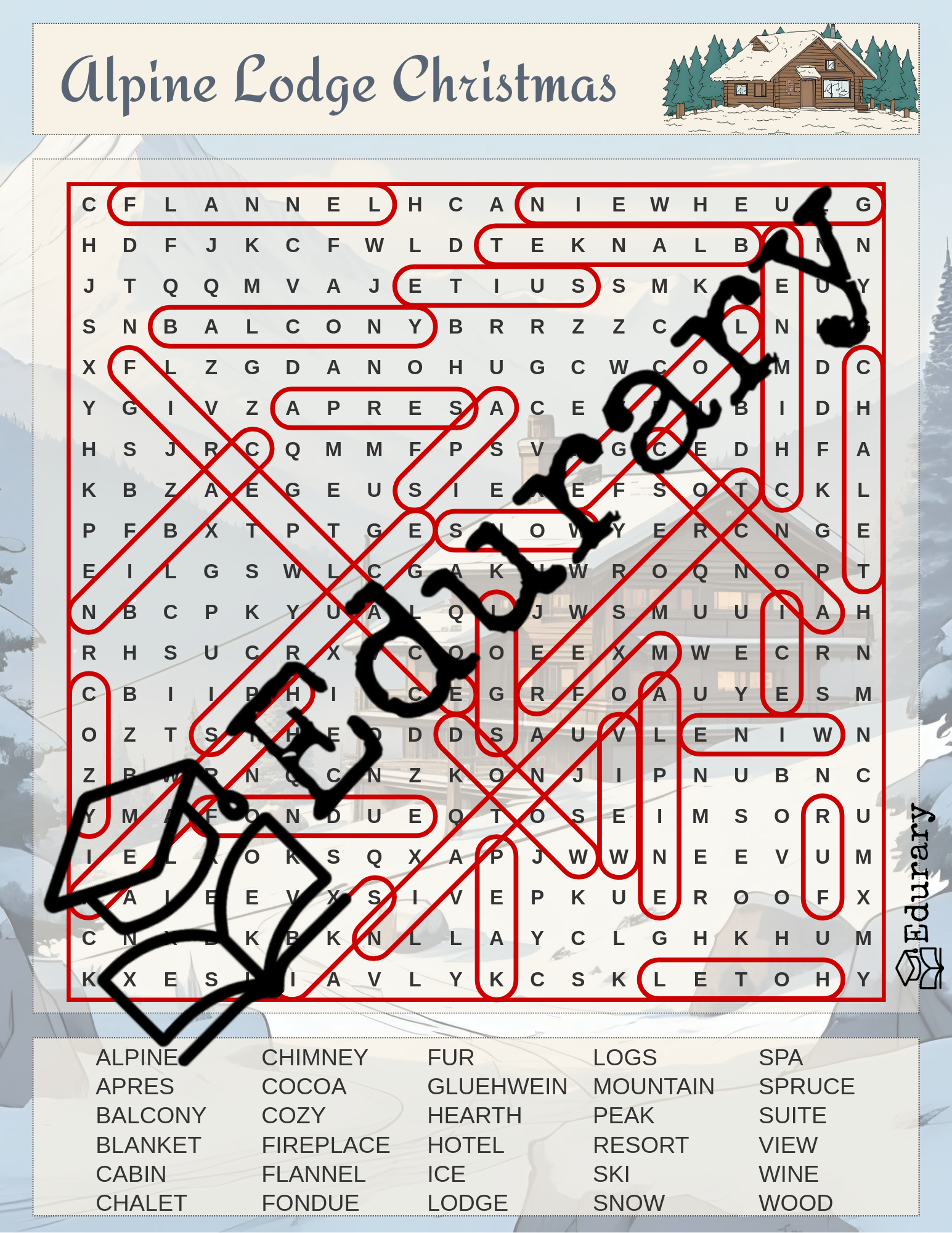 Alpine Lodge Christmas Word Search Puzzle & Answer Key