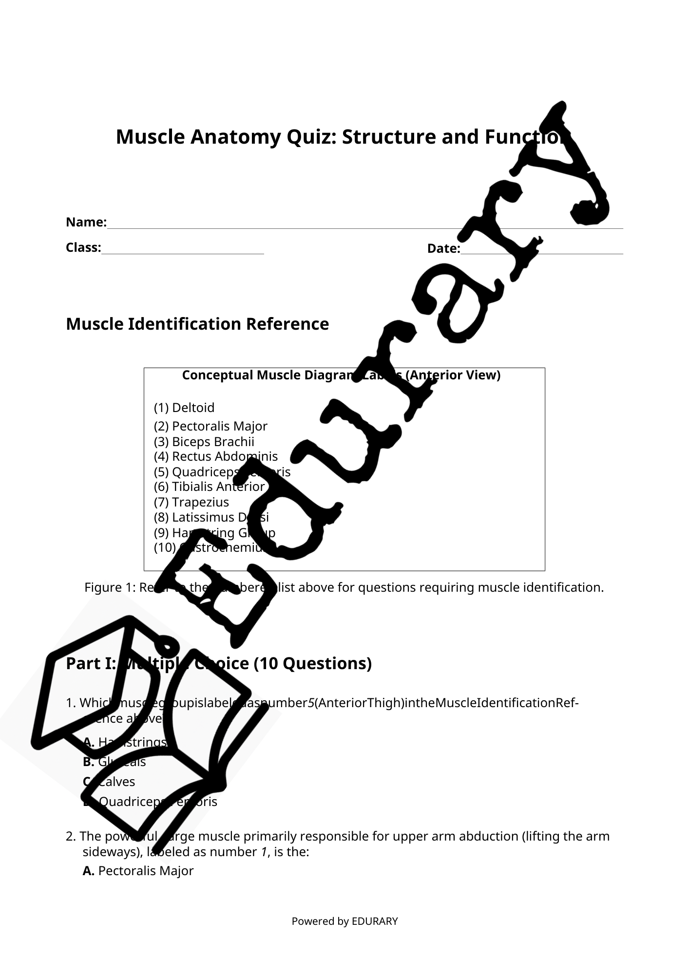 Anatomy Muscle Quiz (with Answer Key) quantity