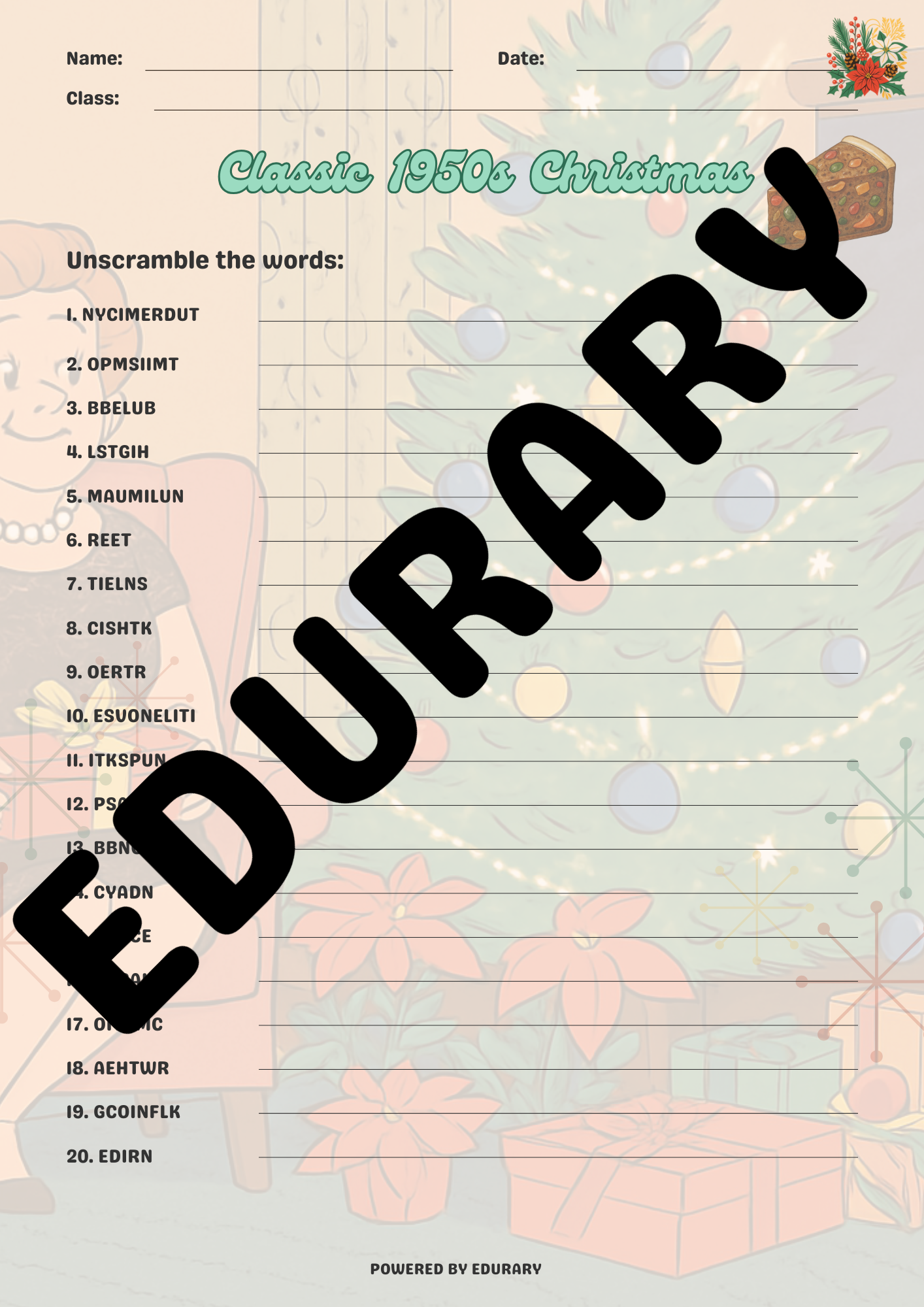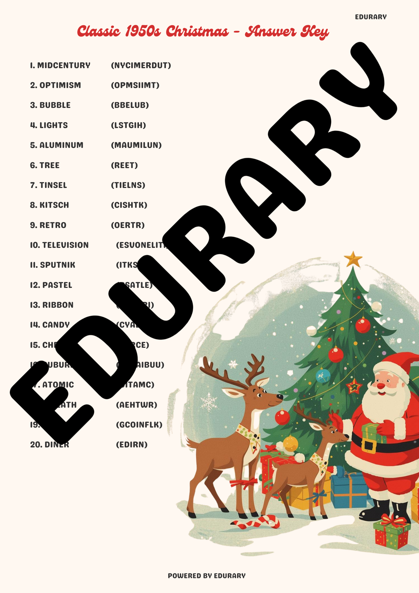 Classic 1950s Christmas Word Scramble (with Answer Key)