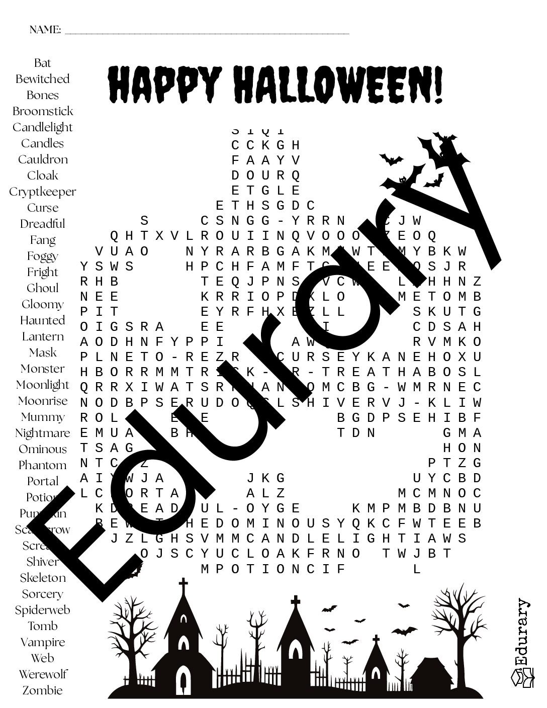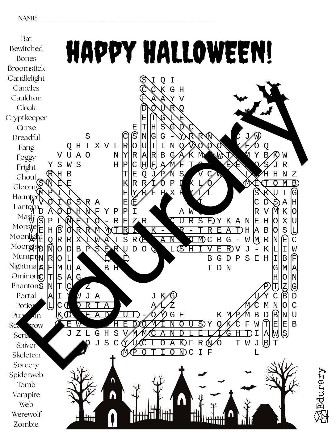 Jack-O’-Lantern Halloween Word Search Printable with Answer Key — Spooky Shaped Puzzle for Kids & Classrooms | Edurary